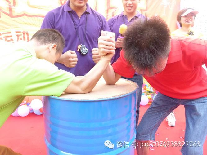 首先進(jìn)行的是吉安容器運動會必不可少的項目——“辦手腕”,比賽規(guī)則是:1、參賽選手必須使用右手進(jìn)行比賽。2、比賽時,兩位選手分別坐在桌子兩側(cè),雙方必須同時將右手放到比賽指定位置,左手握拳置于背后,其余部位不得與臺面接觸,不得借助外力。3、雙方選手兩個大拇指緊緊相扣,在裁判發(fā)令后,誰先把對方的手掰倒,手背必須碰到桌面即為獲勝。4、在比賽過程中,雙方選手雙腳不能移動,每個人的肘部不能脫離桌面,身體不能來回劇烈晃動。5、二人對決中勝出者團(tuán)隊積1分,負(fù)者不積分。