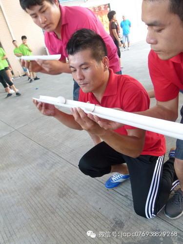 第三項比賽是最有挑戰(zhàn)性的項目——運球。規(guī)則是:1、每組人員5人為1小組,分成三小組,ABCD組同時進(jìn)行,分三回合同時進(jìn)行比賽。四組同時進(jìn)行,每個組員手上有一條PV管。2、由第一個開始運,在5分鐘內(nèi)成功的將球掉入指定的桶里面就算結(jié)束,根據(jù)四組最快為第一名,以此類推,要求球不要掉下來,也不可以倒退,如果掉下來或者是倒退的話就要重頭開始,把PV管反過來兩個人為一根管來運,規(guī)則與第一條一致。3、第一名5分,第二名加3分,第三名加2分,第四名加1分;如果5分鐘內(nèi)沒有完成的小組,均不加分。