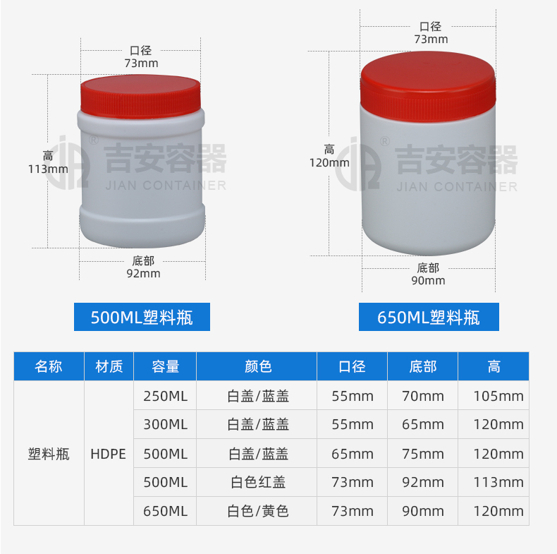 東莞市吉安包裝容器有限公司創(chuàng)立于2000年8月1日,是中國知名品牌企業(yè)。已通過ISO 9001質(zhì)量管理體系資質(zhì)認證,加入了中國中空協(xié)會,并獲得《中國知名品牌》,《國家標準合格產(chǎn)品》,《全國重合同守信用AAA級企業(yè)》,《質(zhì)量.服務(wù).誠信AAA企業(yè)》等榮譽稱號。根據(jù)材質(zhì)的不同,我們的產(chǎn)品分為塑料容器、鐵質(zhì)容器、鋁材容器、玻璃容器、紙質(zhì)容器等五大類。按產(chǎn)品的名稱分為塑料桶、塑料瓶、包裝桶、涂料桶、機油桶、油脂桶、化工罐、膠水瓶、鐵桶、鐵罐、鋁瓶、鋁罐、阻隔瓶、高阻隔瓶等,容量從3ML至1000L多種規(guī)格,多種款式。適合包裝的產(chǎn)品包括:化學(xué)試劑、化工原料、化工助劑、飼料添加劑、油墨、油漆、樹脂農(nóng)藥、日用化學(xué)品、聚氨脂、膠粘劑,廣泛應(yīng)用于化工、建筑、食品、醫(yī)療、生物等各領(lǐng)域。