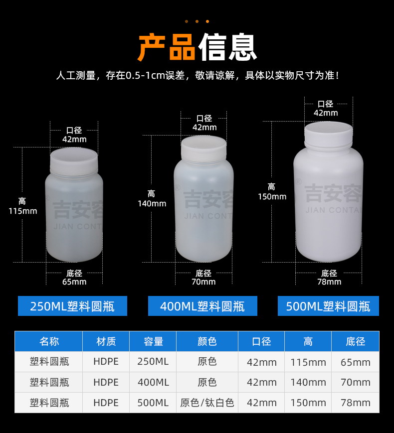 • 產(chǎn)品名稱:500ml中口圓塑料瓶(E124)