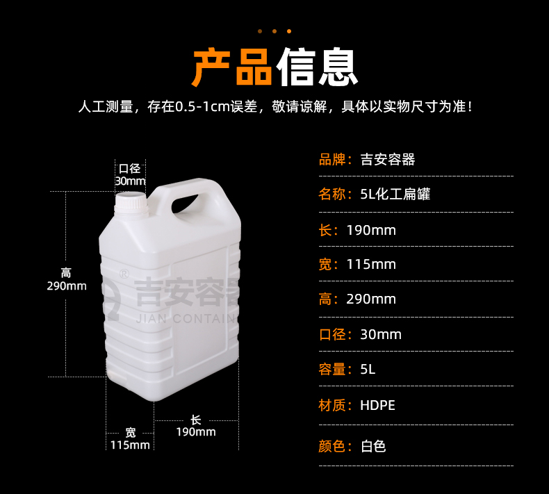 | 容量:5L | 材質(zhì):HDPE |