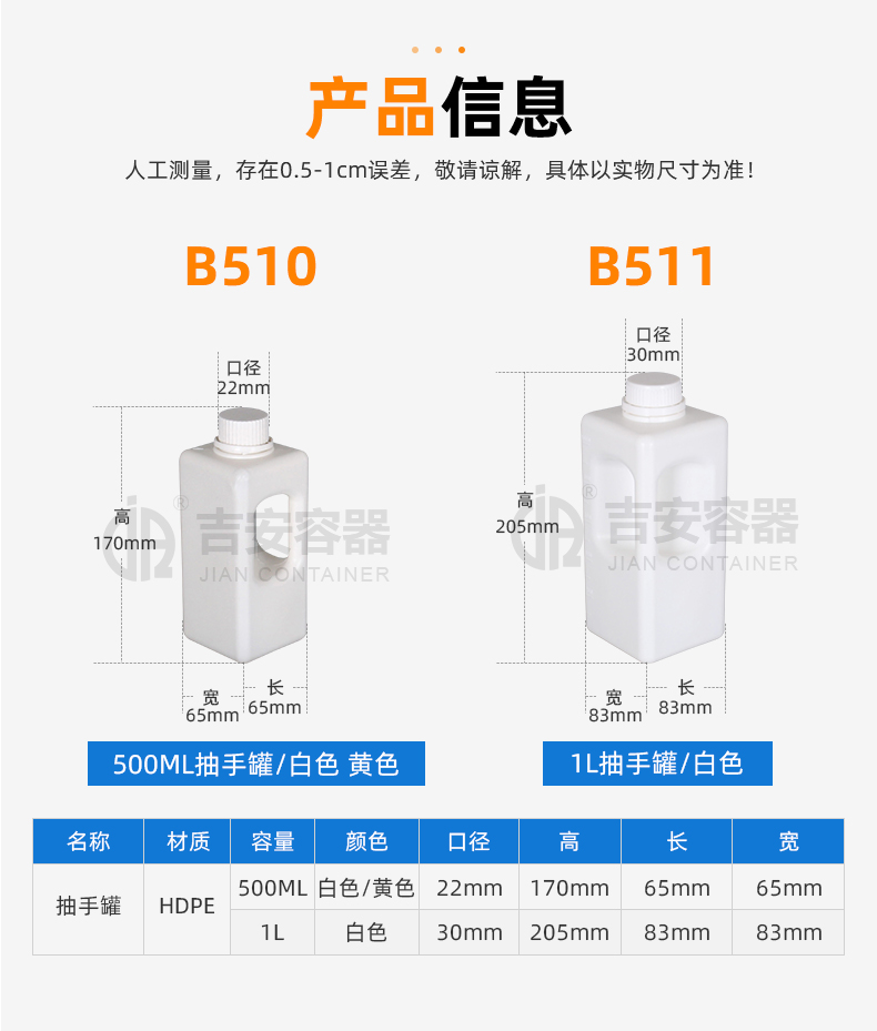 | 容量:500ml | 材質:罐蓋-PP,罐身-HDPE |